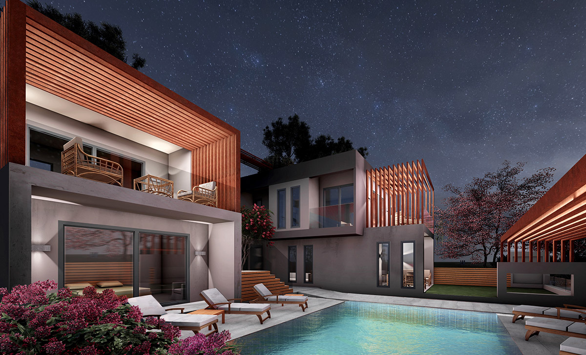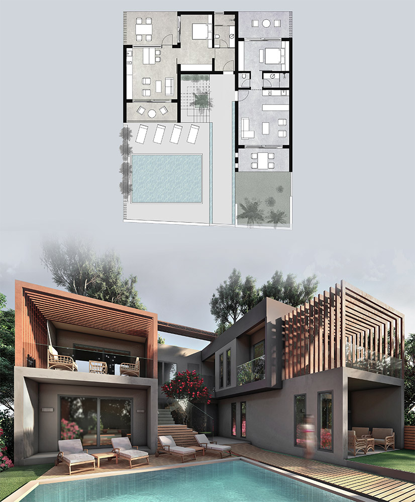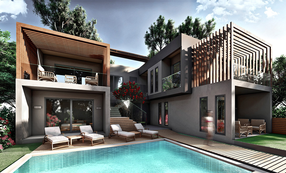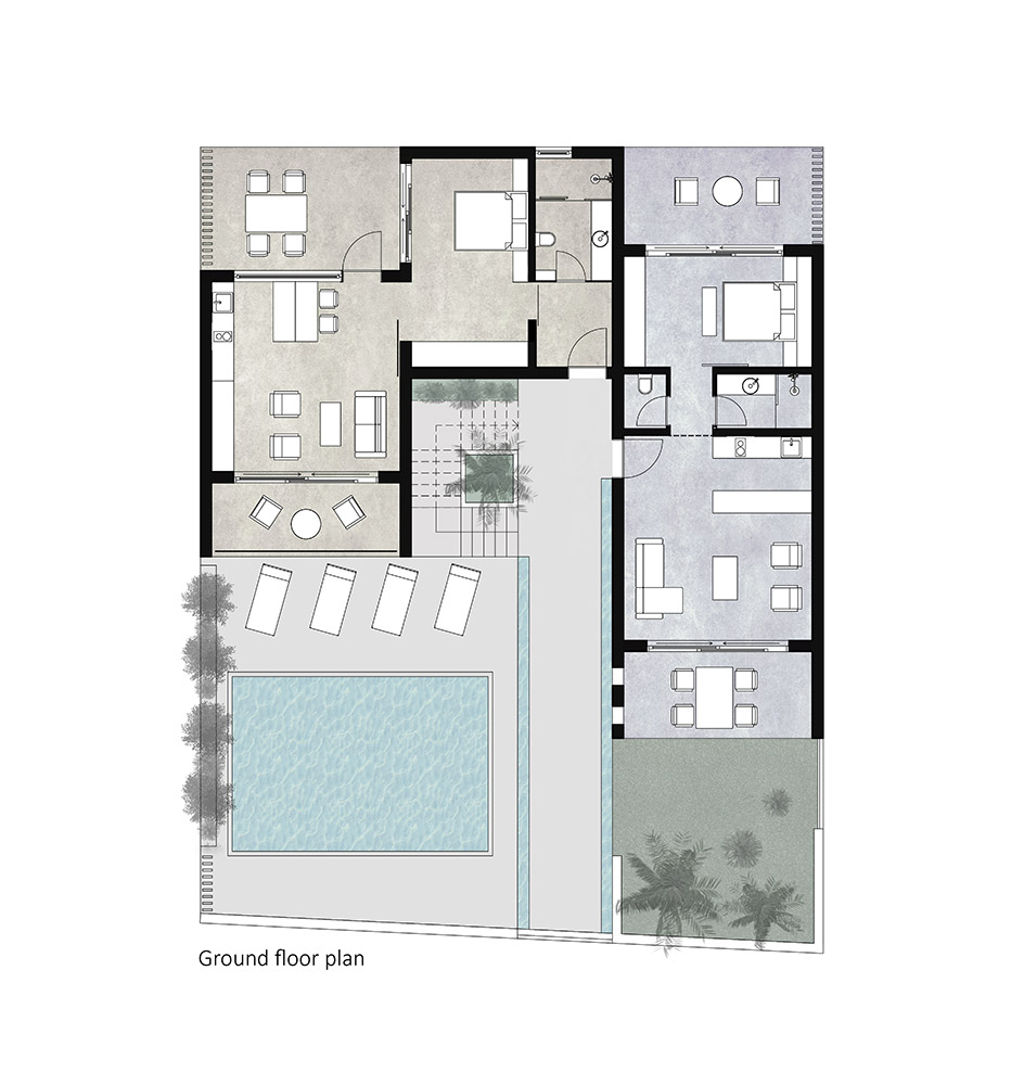 Σύγχρονο συγκρότημα τεσσάρων ανεξάρτητων τουριστικών διαμερισμάτων, στην παραθαλάσσια περιοχή της Κουρούτας. Η σύνθεση οργανώνεται γύρω από κοινόχρηστο υπαίθριο χώρο με ιδιωτική πισίνα, δίνοντας έμφαση στη χαλάρωση και την άνεση των επισκεπτών.