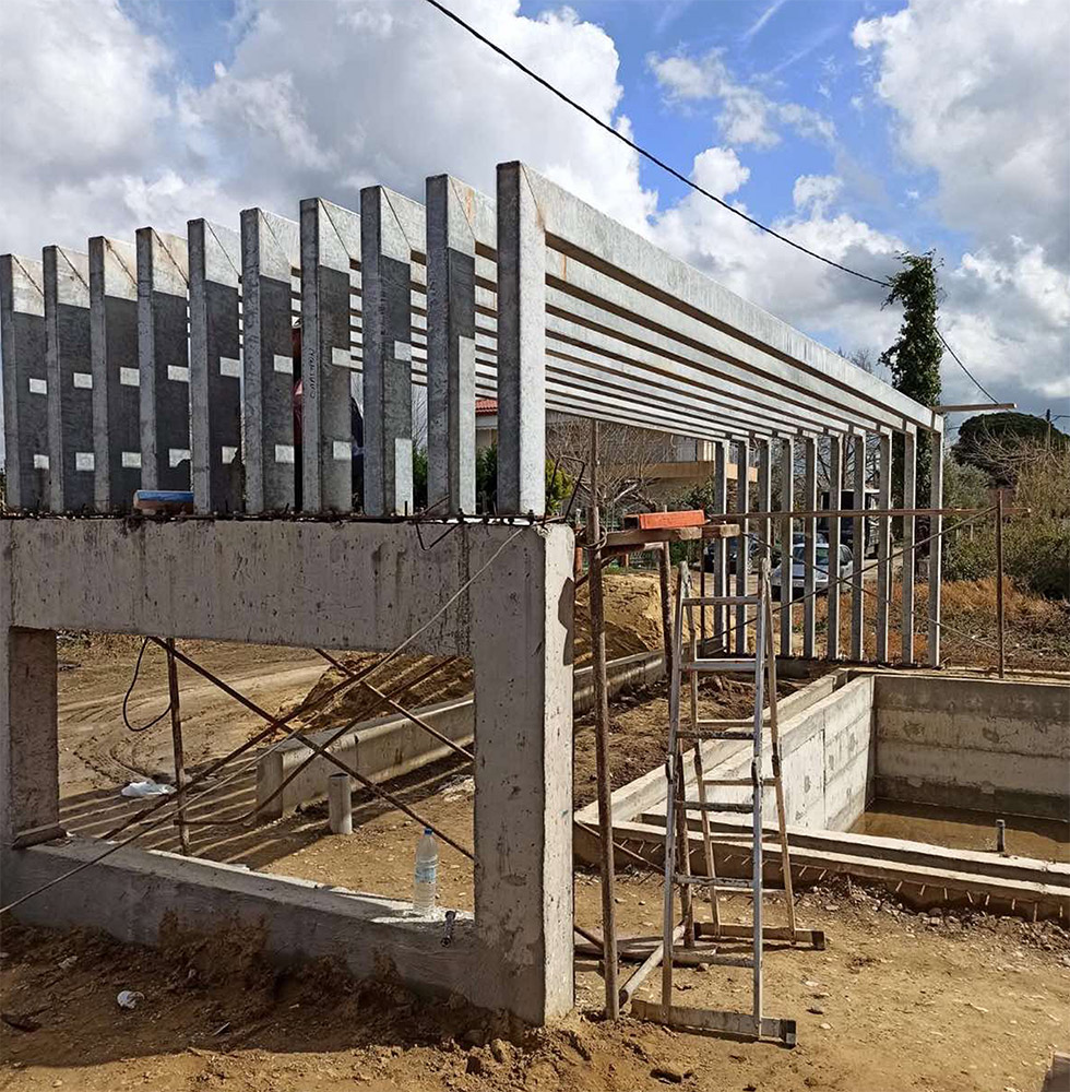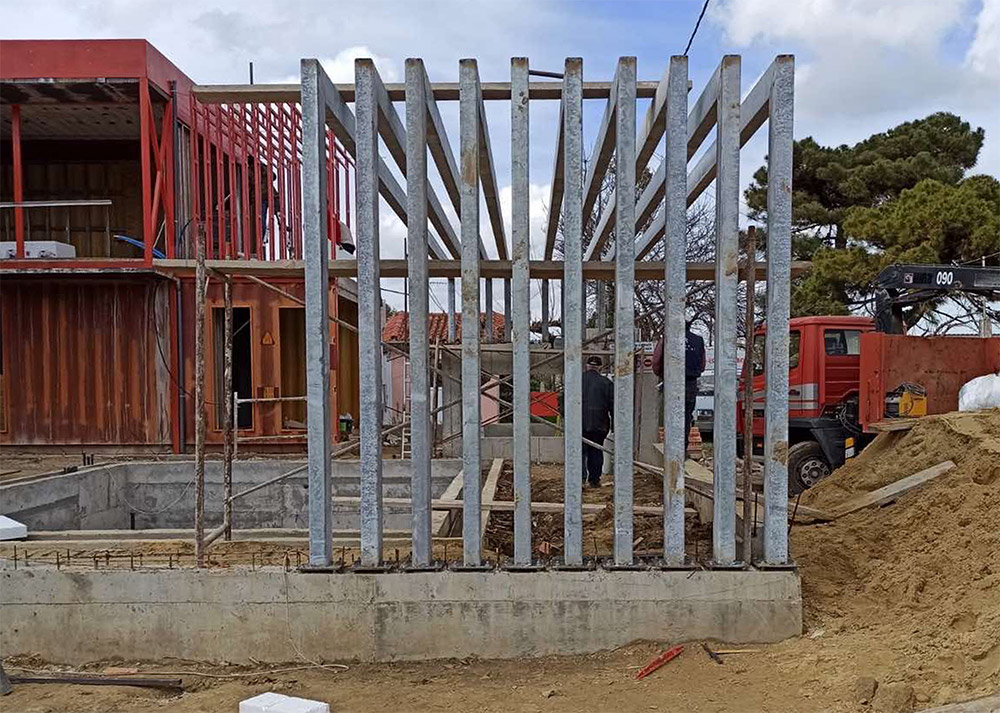 Η κατασκευή βασίζεται σε φέροντα σκελετό από shipping containers, μια επιλογή που προσφέρει σημαντικά πλεονεκτήματα ως προς τον χρόνο υλοποίησης, σε σύγκριση με τα συμβατικά κτίρια. Παράλληλα, η χρήση μεταλλικών δομών εντάσσεται σε μια σύγχρονη αρχιτεκτονική προσέγγιση με έμφαση στην επαναχρησιμοποίηση και την απλότητα των μορφών. |
